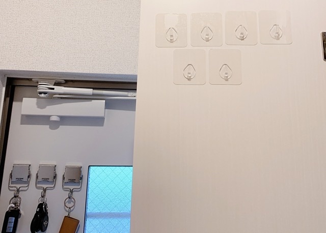 ニトリのシールフックは捨てるには勿体ないので、きっとまた出番あるような気もするので、玄関収納の扉で保管しています。