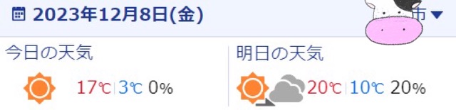 今日も冷え込みなどは無く、お天気の予報です。