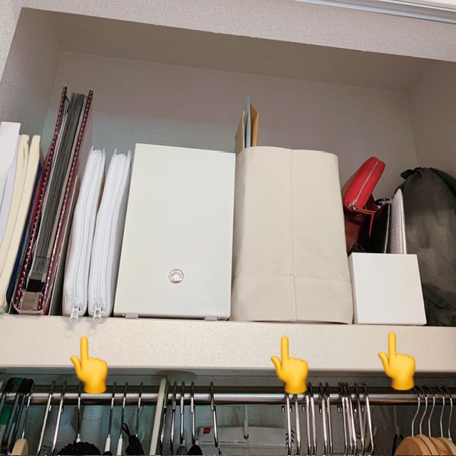 私の部屋の小さなクロゼットの枕棚に分類して定位置を作りました