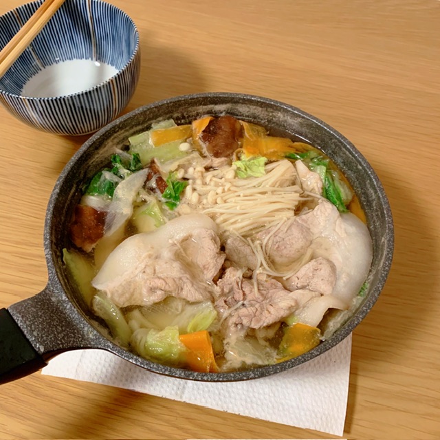 豚ロース、白菜、人参、椎茸、エノキ、長ネギ