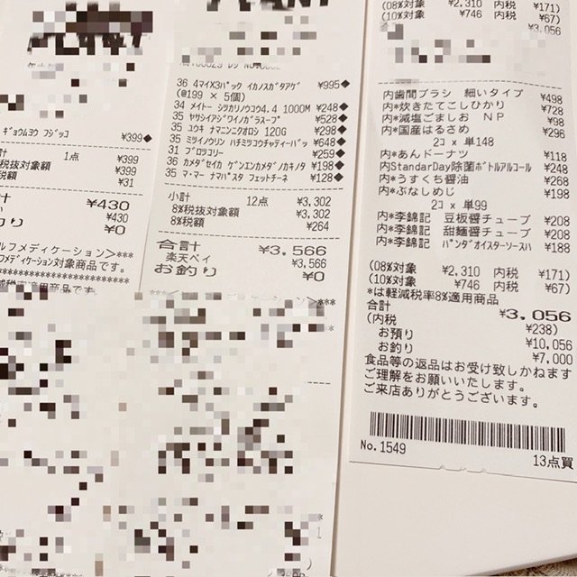 以上ドラッグストア13点、3056円