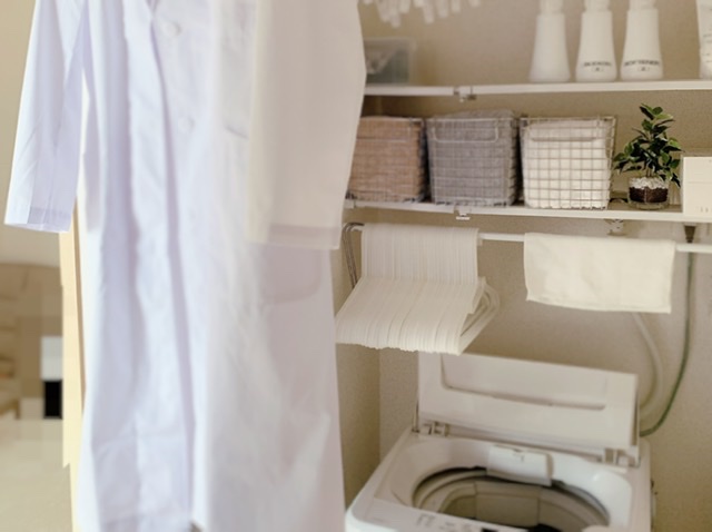 今までもいろいろ工夫もして、洗濯機横を定位置にしていました。場所的には、引っ越し先のここが良さそうですが。
