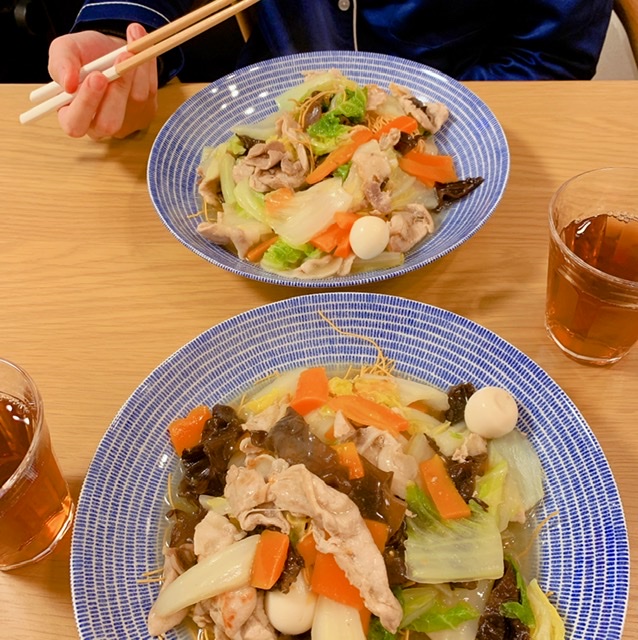 前回の様子👆この中華皿も大好きですが、やはり、アベックのベージュもお料理を引き立ててくれますよね、間違いないわ~