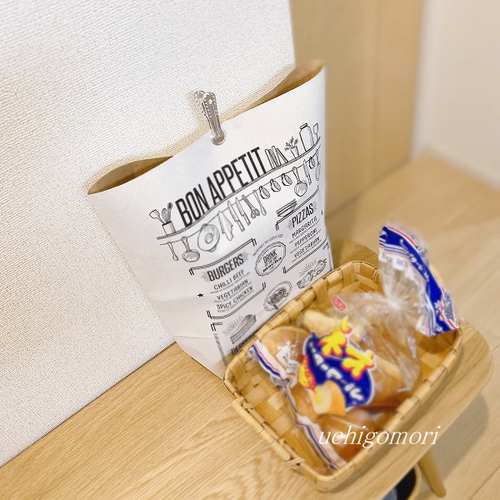 そして、この前にはティッシュ類をすぐ取れるようにパックから出したものと、キッチン雑貨を一式在庫しています