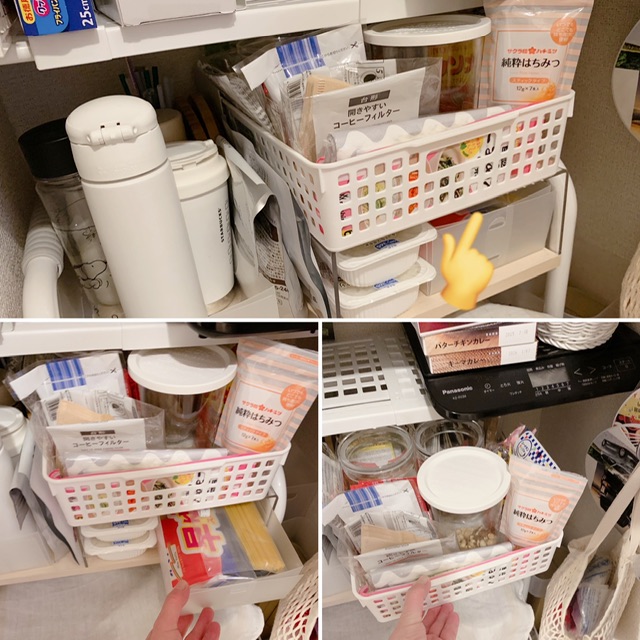 まず、食器の台に使ってたアクリル仕切り棚を横取りして、ここで使う。
