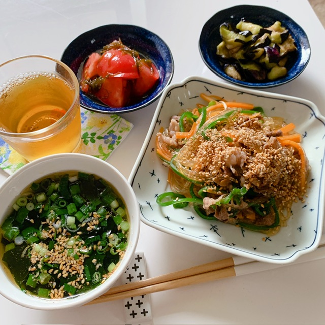 チャプチェ風。お肉を解凍しちゃってて夜なのに頑張らないとイケなくなったの~