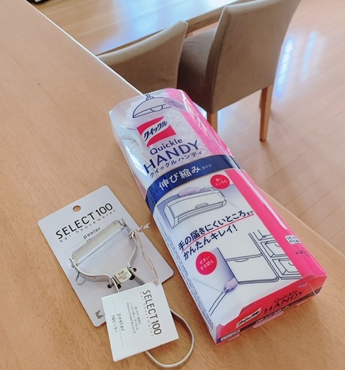 窓を開ける、顔を洗う、自然乾燥の食器の収納、洗濯物の収納、クイックルハンディーワイパーで