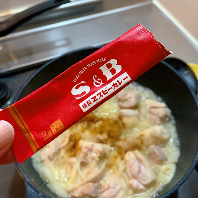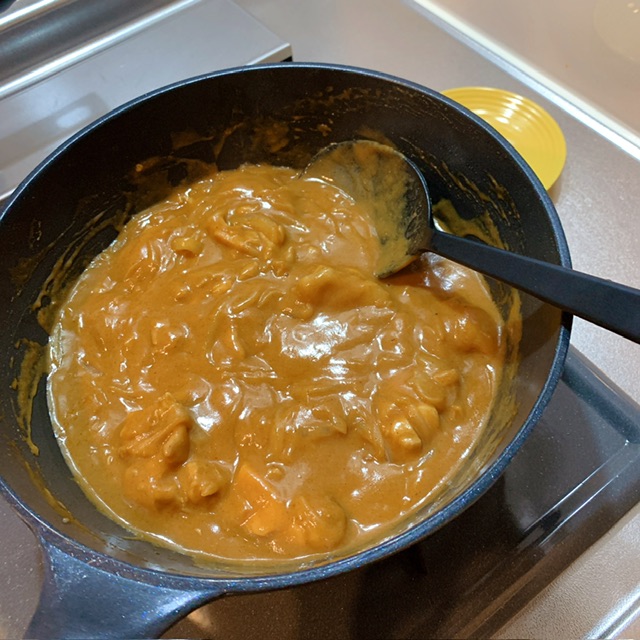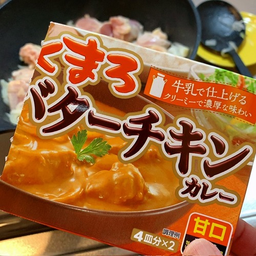 朝、割いた業スーパンの残りとセブンのバターチキンカレーです