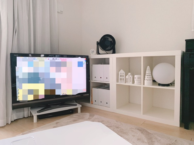 娘が良く出すものは手前の三つ。奥に入れた三つはたまにしか出さないし、TV液晶は可動タイプなので角度を少し変えると奥の物が出しにくいということもありません。
