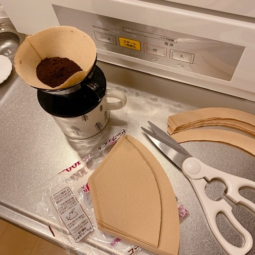 (お湯を注ぐのに神経を使い、そして、時々、豆がカップに流れ入ってるの)