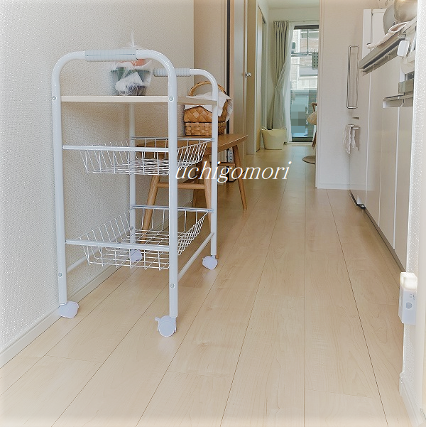 もう少し見た目も重視(白いワゴンを買うとか?同じ白いケースを(ずらりと揃える)買うとか?)したい気持ちもあるのですが収納道具はもう買わないと決めているので、手持ちの物で頑張りますよ~。