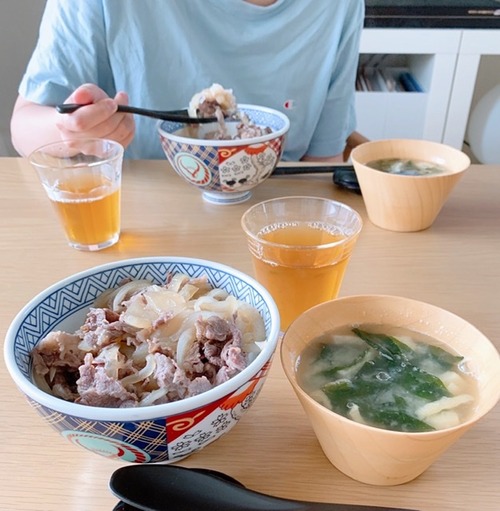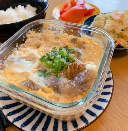 今日はご飯もパックごはんでどちらもレンチンして、牛丼はレンチ後にお鍋に移して玉子で綴じていただきました
