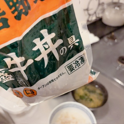 今日はご飯もパックごはんでどちらもレンチンして、牛丼はレンチ後にお鍋に移して玉子で綴じていただきました