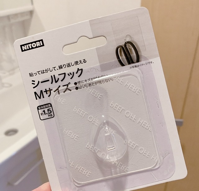 フックに釣っているので、手を伸ばして軽く引っ張るとすぐ取れます。
