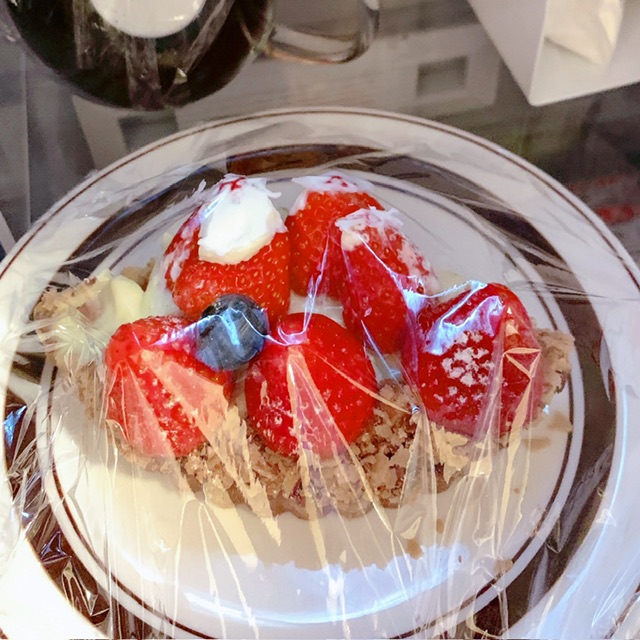 ブランチには昨日のケーキ残りを少し食べて朝カフェに。