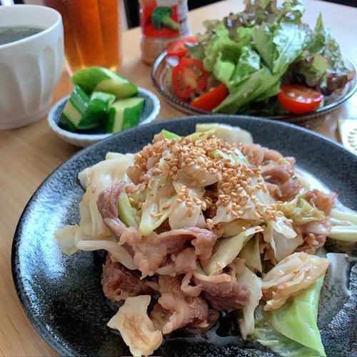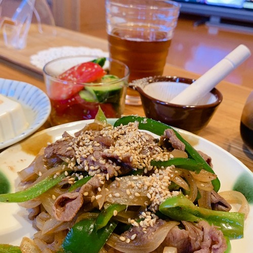 今日は豚ロースを焼肉タレで焼きました。