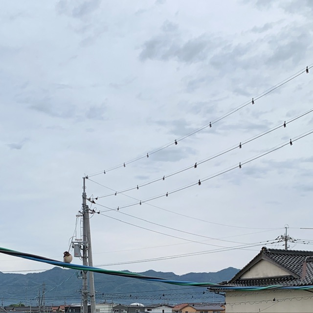 この⇧2枚の画像は娘の部屋からの今空ですが、ツバメが電線に来ていましたよ。この時期、巣場所探しかアパートの周辺に多く見ます。