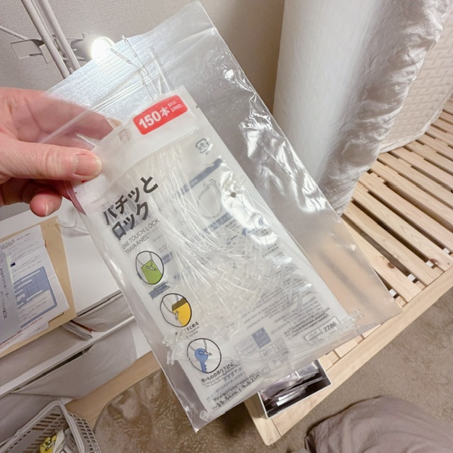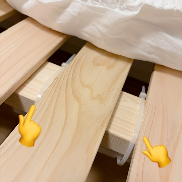 すのこベッドなのでこんな風に結束バンドをユルユルに通して