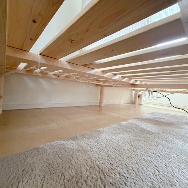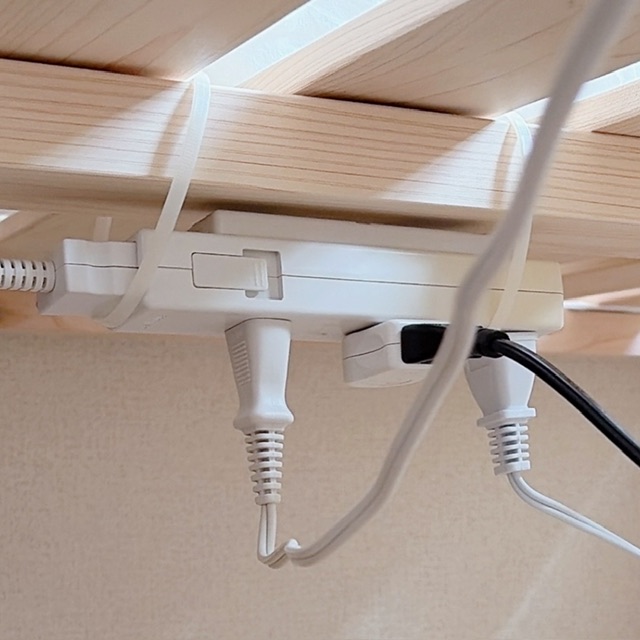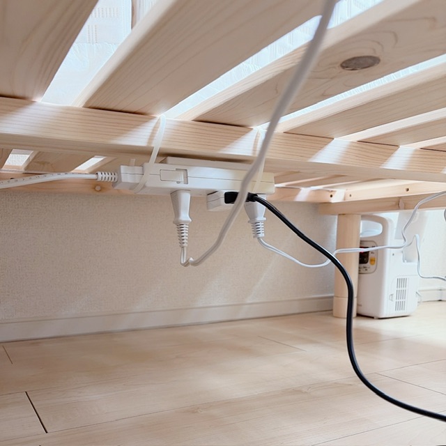 今回は…ベッド下の延長コードのコンセントタップを浮かせます