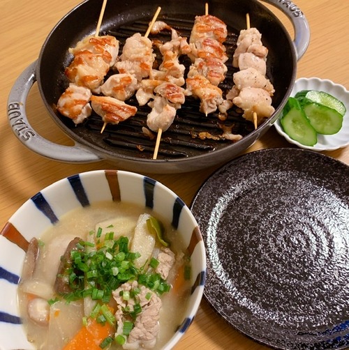 晩ごはんには、さつま芋も入れて豚汁を作りました